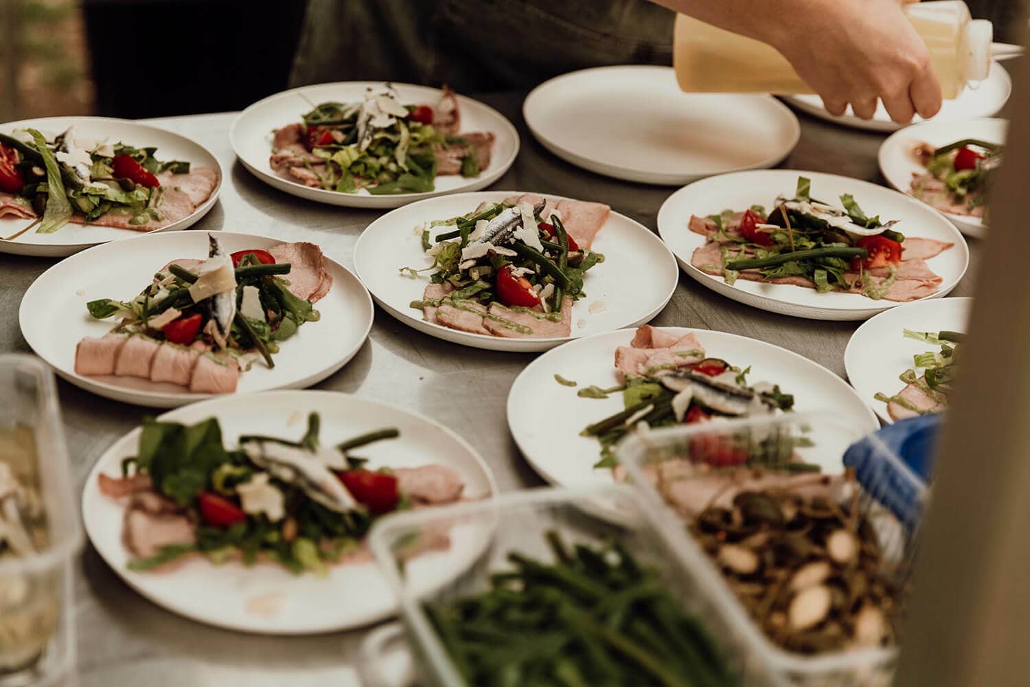 Het eten en drinken. We wilden graag lekker eten en lekker drinken en veel ervan. We zijn altijd een beetje bang dat mensen honger of dorst zullen lijden. We wilden ook een walking dinner zodat mensen met elkaar zouden praten. Niets te formeel. We hadden street food voor het grote deel, later hadden we nog kaas en ham planken van een erg goede winkel in Leuven, een food truck met Griekse pita voor het nachtelijke hongertje. En niet te vergeten, de prachtige lange tafel met verschillende taarten gemaakt door de nicht van mijn man die daar een bedrijf in heeft.
