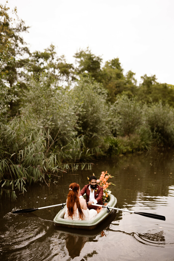 Lotte en Kogul: “De bloemist, styling en planning. We hebben hier veel tijd zelf ingestopt, omdat we eigenlijk niet iets konden vinden wat helemaal bij onze wensen aansloot. Vandaar dat we die kosten liever wilden besparen en er lekker zelf mee aan de slag zijn gegaan. We hadden er ook gewoon heel veel plezier in om dingen uit te proberen en constant bij te schaven. Op de dag zelf was ik wel bang dat we onze vrienden met te veel werk hadden opgezadeld, maar als ik terugkijk, vind ik het een heel mooi idee dat onze vrienden op deze manier aan de dag hebben bijgedragen.”