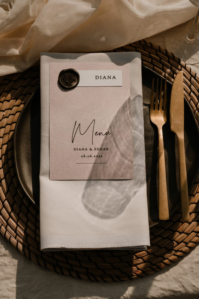 De styling van deze shoot is een mix van Bohemian vibes met een gedurfd randje, maar wél met een fancy uitstraling. Het is perfect voor een bruidspaar dat een statement durft te maken en niet bang is om te kiezen voor datgene wat helemaal bij hen past. Houd je niet van zoete pasteltinten en gipskruid? Geen man overboord. Voor deze shoot gebruikten we een strak zwart frame als backdrop tijdens de ceremonie, stoere vintage styling items, zwarte en donkere accentkleuren voor de aankleding en veel groen en bruintinten in het bloemwerk. Trouwen aan de kust is dineren aan lange tafels, dansen bij zonsondergang en ja zeggen met uitzicht op zee. Jullie liefde vieren met je voeten in het zand. Need we say more? Dit is er eentje om te onthouden.