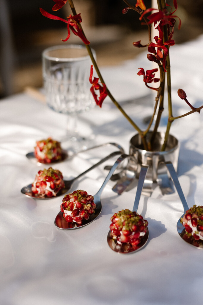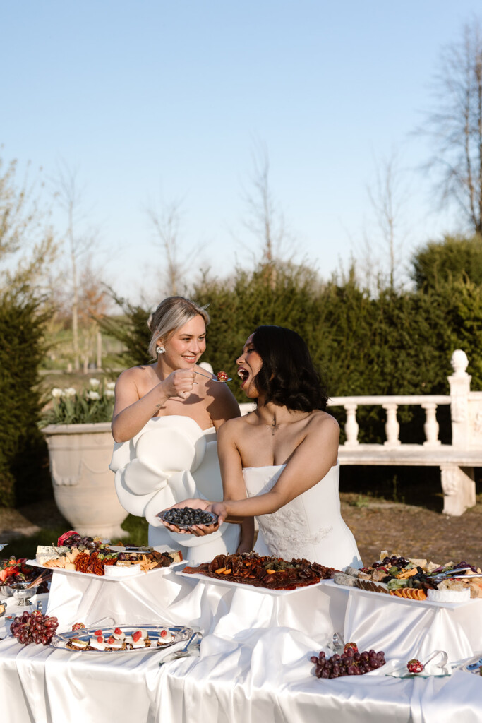 Dus voor alle bruidsparen die twijfelen tussen een formeel diner en iets meer ontspannen: waarom niet het beste van beide werelden? Deze shoot bewijst dat je met de juiste styling en aandacht voor detail een borrelconcept kunt creëren dat net zo elegant en gedenkwaardig is als elke traditionele bruiloft.