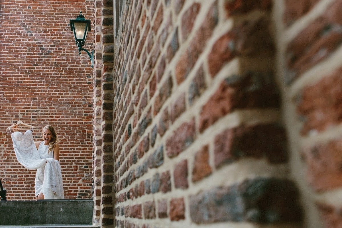 Ik wist meteen dat ik geen standaard jurk wilde uit de reguliere trouwzaken. Op instagram kwam ik het merk Rue de Seine tegen en ik vond de stijl meteen tof! Het is een Australisch merk. Toen ben ik gaan googlen waar ze dit merk verkochten. Ik kwam uit bij een super leuk boetiekje in Nijmegen met prachtige aparte jurken. ‘Wild at heart’. Uiteindelijk ben ik voor de ‘Fox Gown’ van Rue de Seine gegaan.