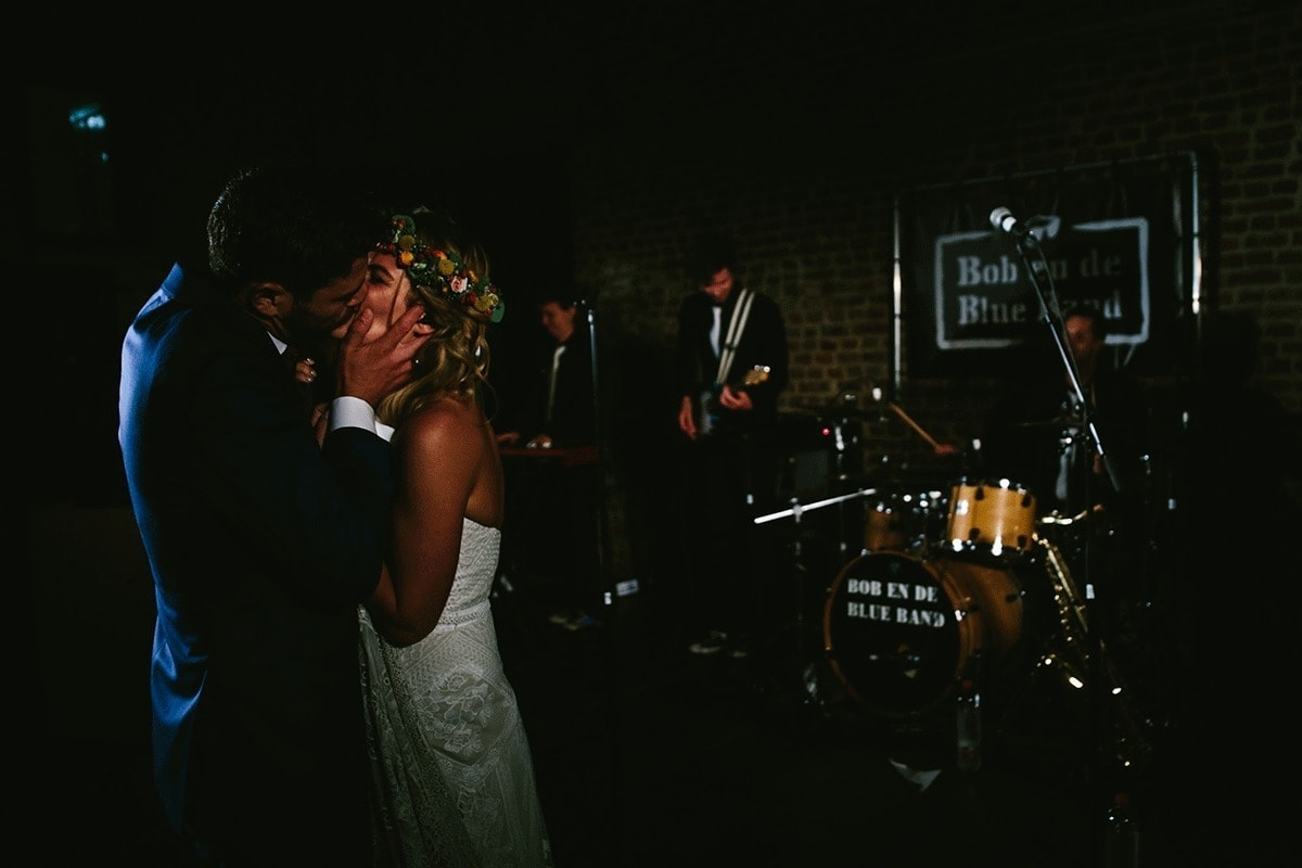 Eten aan lange tafels, een bruid die ineens met de band staat te zingen, het gebeurde allemaal bij deze fijne festival bruiloft!