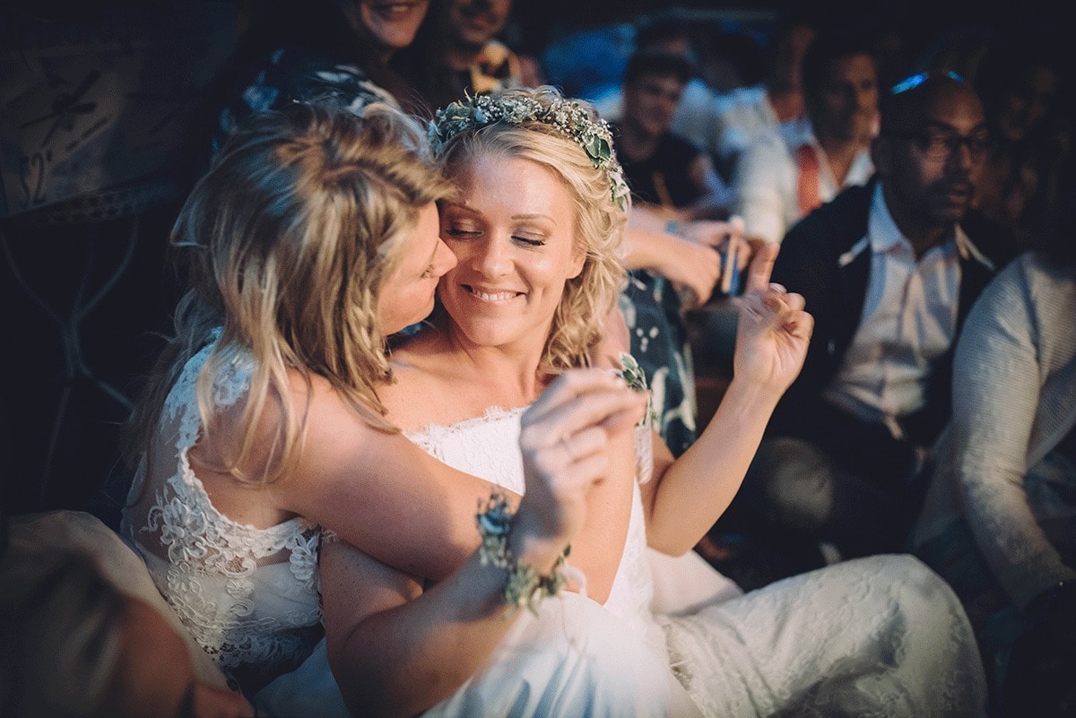 Tegen het eind van de middag werden we, middenin het bos, ontvangen in de tuin van de boswachter alwaar er een heerlijke BBQ voor ons klaarstond. Na het eten hebben we tot in de late uurtjes gedanst op muziek van verschillende dj’s. De avond werd afgesloten in een grote schuur waarbij iedereen tussen het hooi op de grond plaatsnam en kon genieten van 3 steengoede live muzikanten. Tijdens het optreden werden er kleine muziekinstrumentjes uitgedeeld zodat we lekker mee konden zingen en spelen. Een intiemere afsluiting van deze prachtige dag hadden we ons niet kunnen wensen!