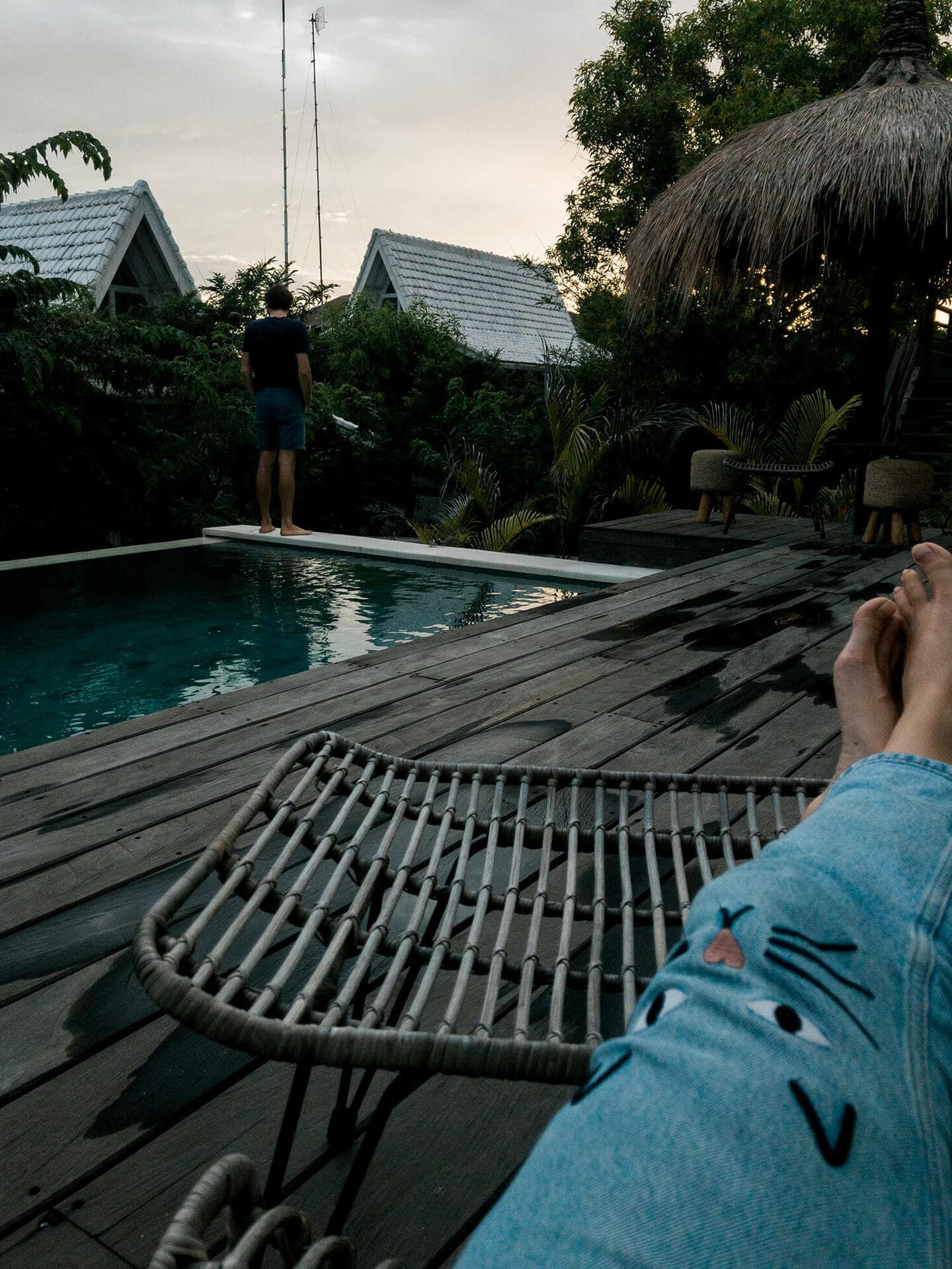 Glenn en ik mochten twee nachten komen slapen bij Salty Breeze Bali. Een complex met unieke bungalows, elk met z’n eigen charme. Wij sliepen in de zogenaamde ‘poolhouse’, een villa met eigen zwembad. De villa is trouwens onderverdeeld in twee ruimtes: de ‘poolhouse’ en de ‘boutique room’. Het zwembad hoort in principe bij de eerste. Naast deze villa zijn er nog zeven andere prachtige bungalows.