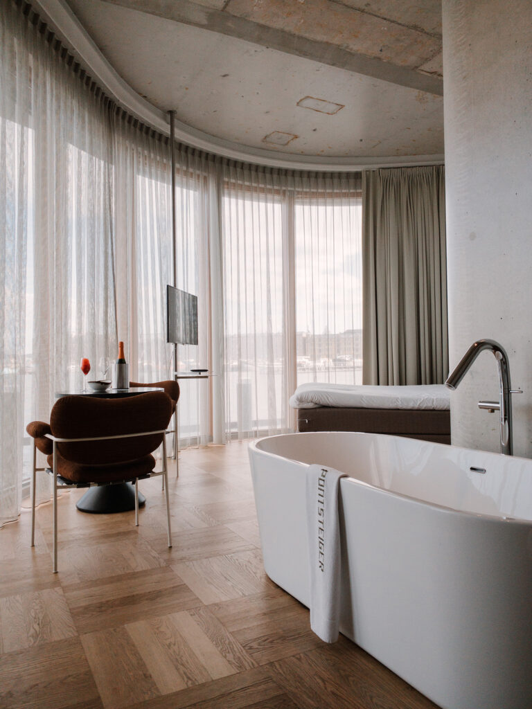 Amsterdam zit tjokvol fijne hotels, maar Hotel Pontsteiger is nog vrij nieuw. Het is een kleinschalig boutique hotel in een nieuw gedeelte van Amsterdam: Houthavens. Je slaapt er met een waanzinnig uitzicht op het IJ, en vooral de suite (die we keihard aanraden voor je huwelijksnacht!) is echt een droom… Denk bed met uitzicht, vrijstaand bad, heel veel ruimte, een heerlijke douche en ook een zitgedeelte.