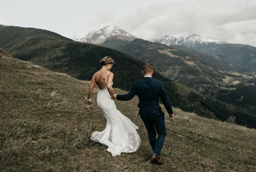 Een bruiloft in Oostenrijk organiseren is een flinke klus. Gelukkig had dit bruidspaar er al contacten, en dus organiseerden ze een bus voor hun gasten om naar de bergen te komen!