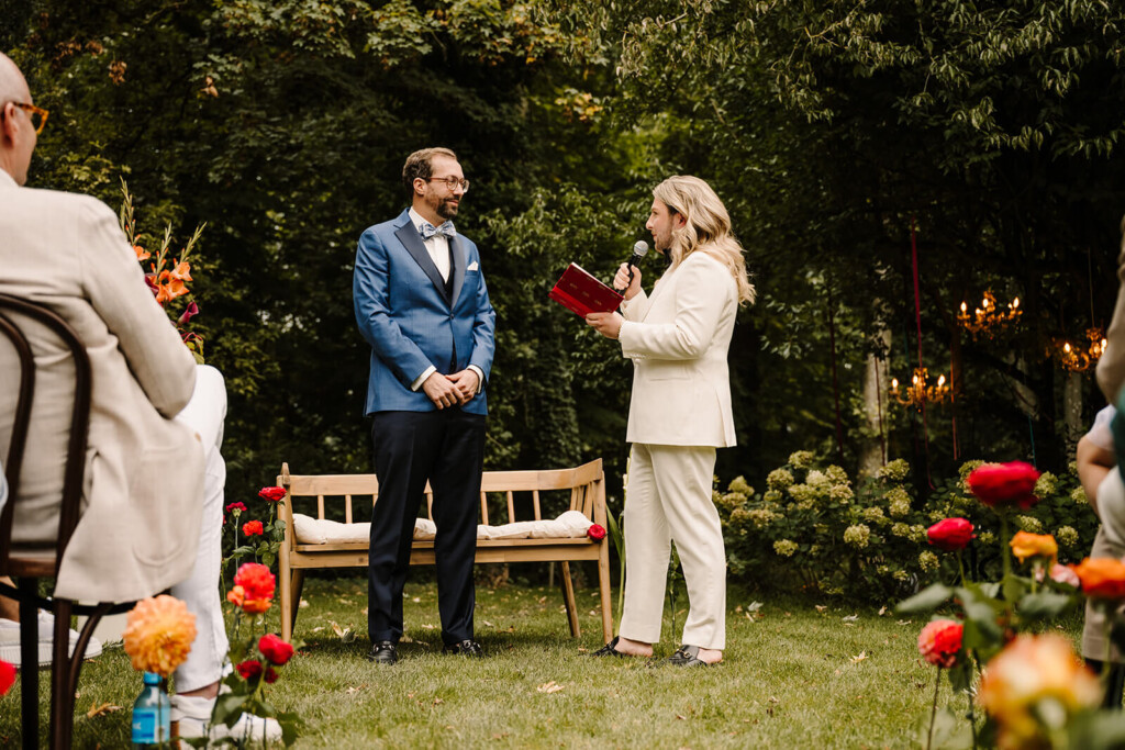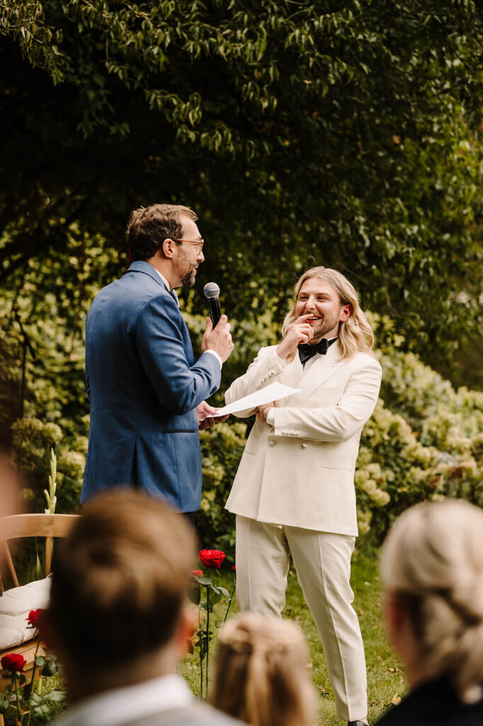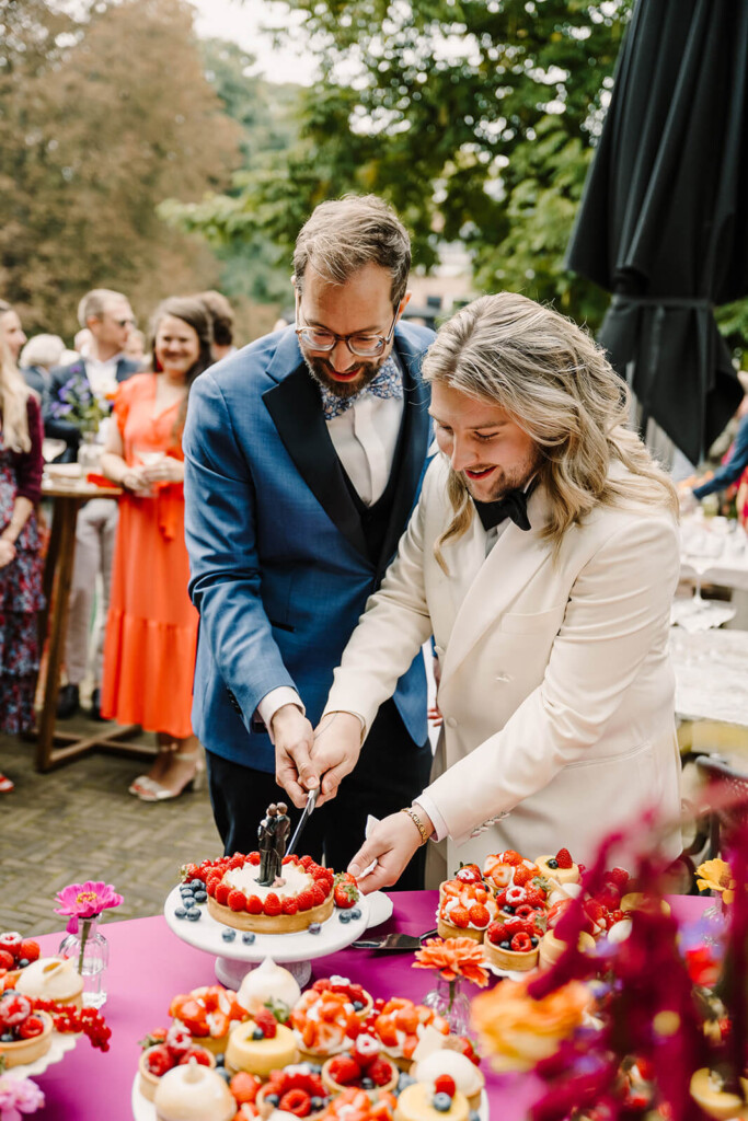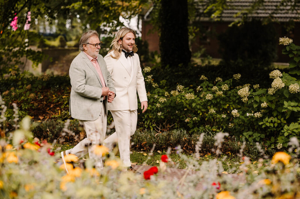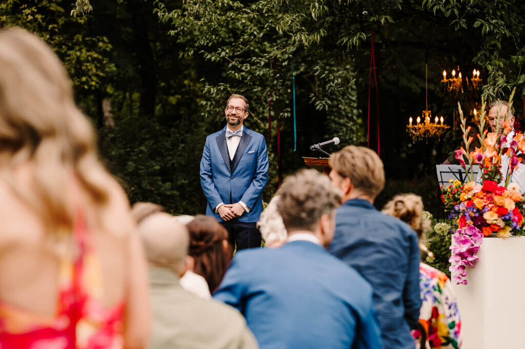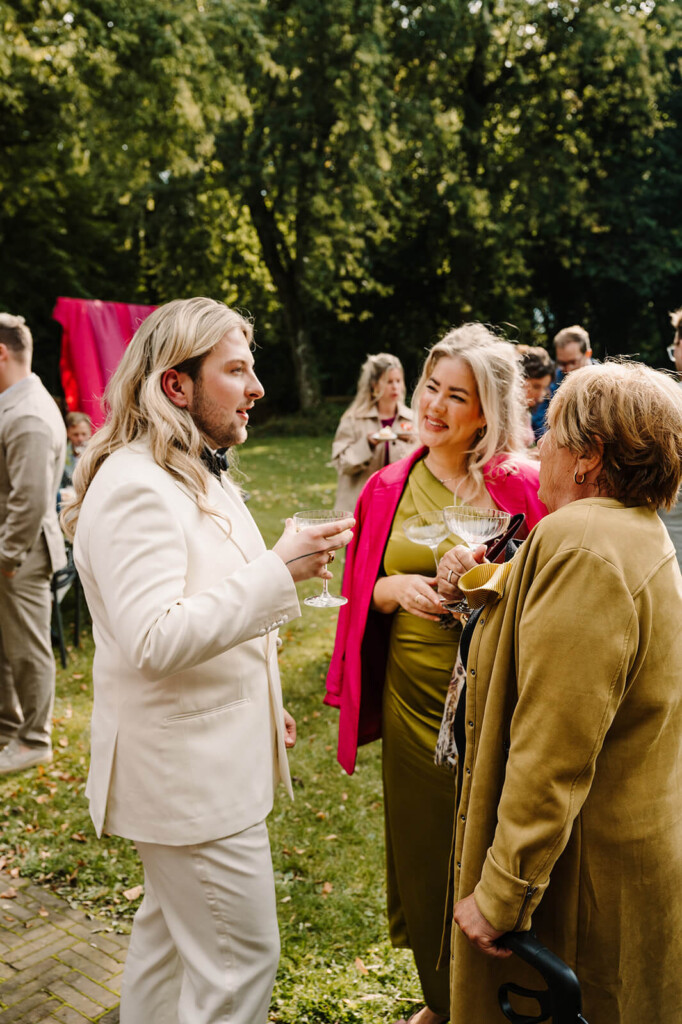 Wouter: het diner met getuigen en ouders de avond voorafgaand aan het huwelijk vond ik heel bijzonder. En de ceremonie zelf in de tuin van de Breedenborg, met een herfstzonnetje en 19 graden.
