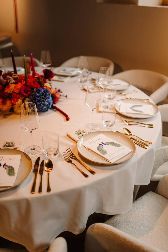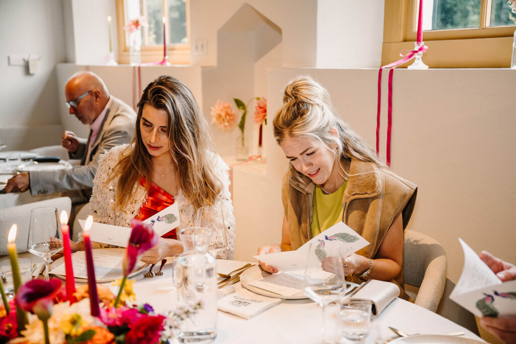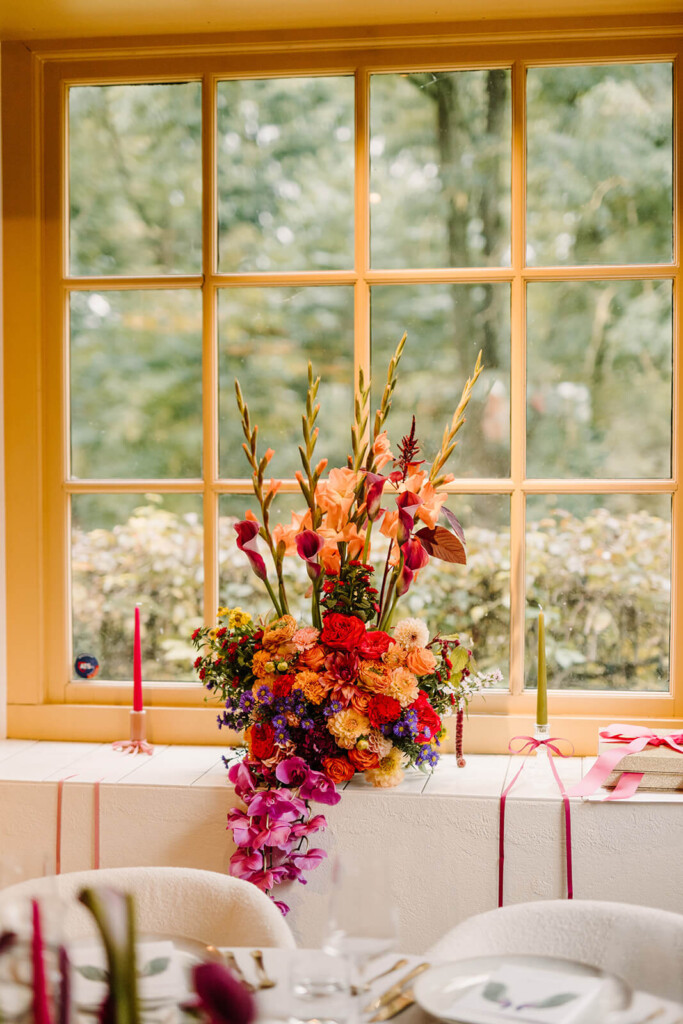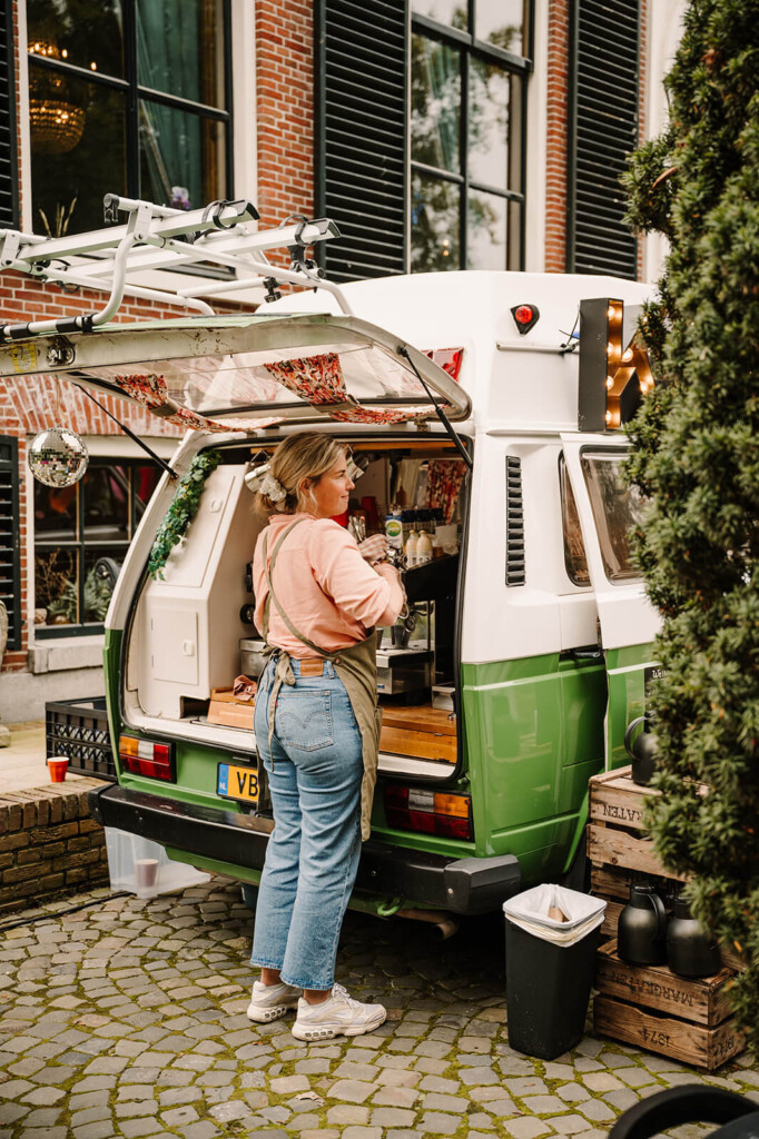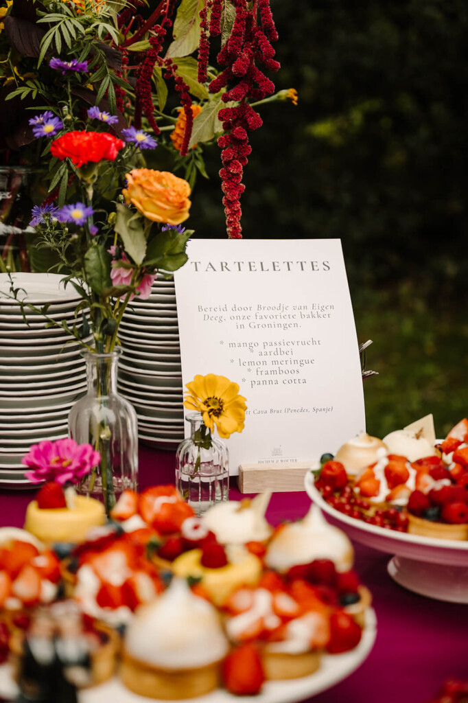 We hebben heel veel zelf gedaan, van het maken van de bloemstukken tot het borduren van de servetten. En van het maken van de linten en de backdrop tot ontwerpen van de ringen bij een edelsmid in Dalfsen. Dit maakte het juist heel leuk om te doen, we konden alles helemaal zelf uitdenken.