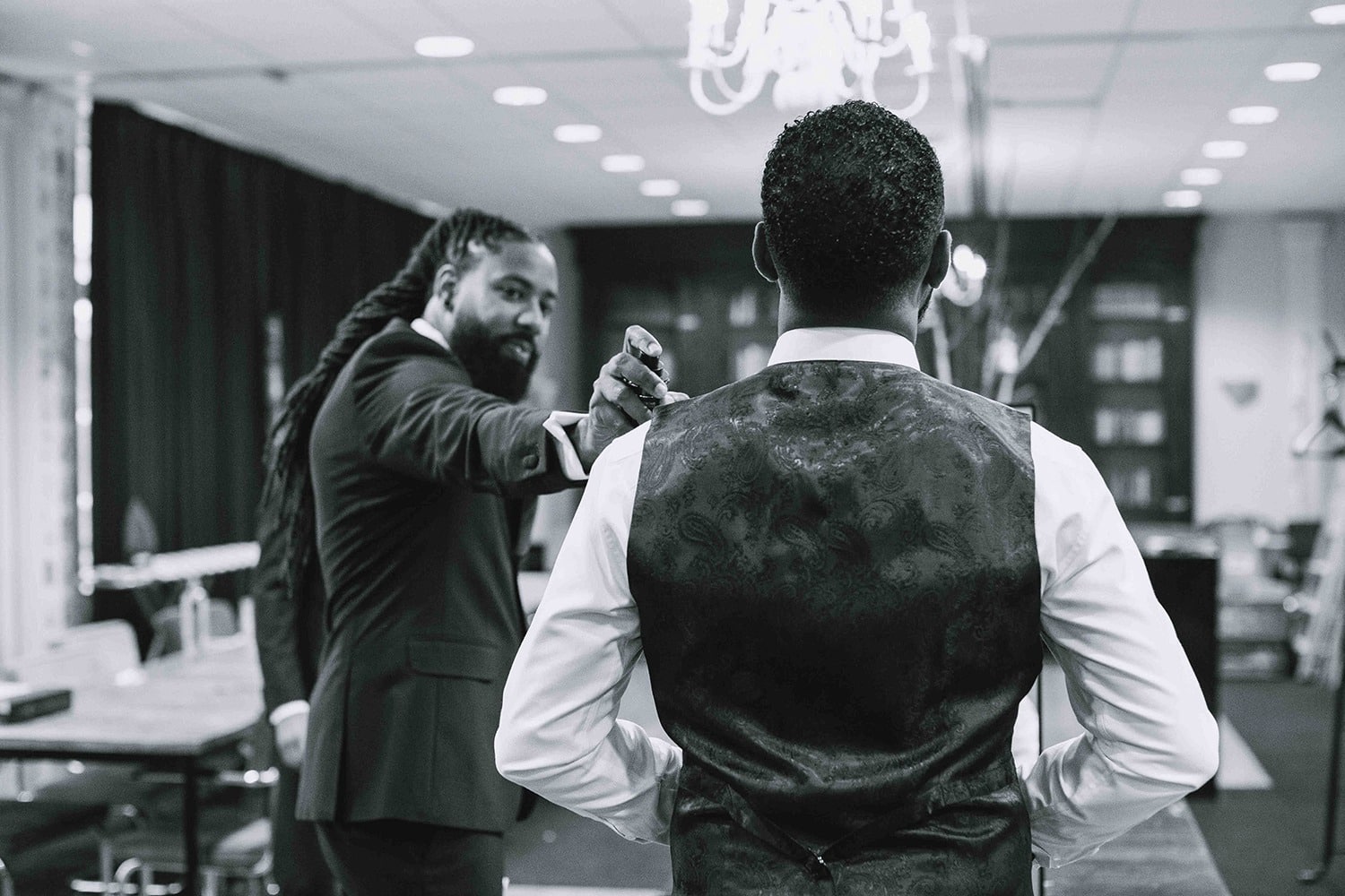 We besloten als koppel om de avond voor de bruiloft niet samen te slapen. We verbleven met alle bruidsjonkers en bruidsmeiden in Villa Vennendal en hebben gescheiden geslapen. In de ochtend werden we apart van elkaar klaar gemaakt. De meiden een ware beautysalon met visagisten en kappers onder genot van Prosecco. Toen ik als laatste het gangpad op mocht met mijn schoonmoeder voelde ik mijn hart kloppen in mijn keel maar toch heel relaxed. Ik hoorde ons nummer starten dat prachtig onder begeleiding van de piano werd gezongen. Eenmaal in het gangpad openden de gordijnen en zag ik Edson staan, zodra hij me zag huilde hij, waardoor ik ook begon. Ik liep naar hem toe met zoveel liefde in mijn hart dat ik niemand anders meer zag… dat was mijn favoriete moment.