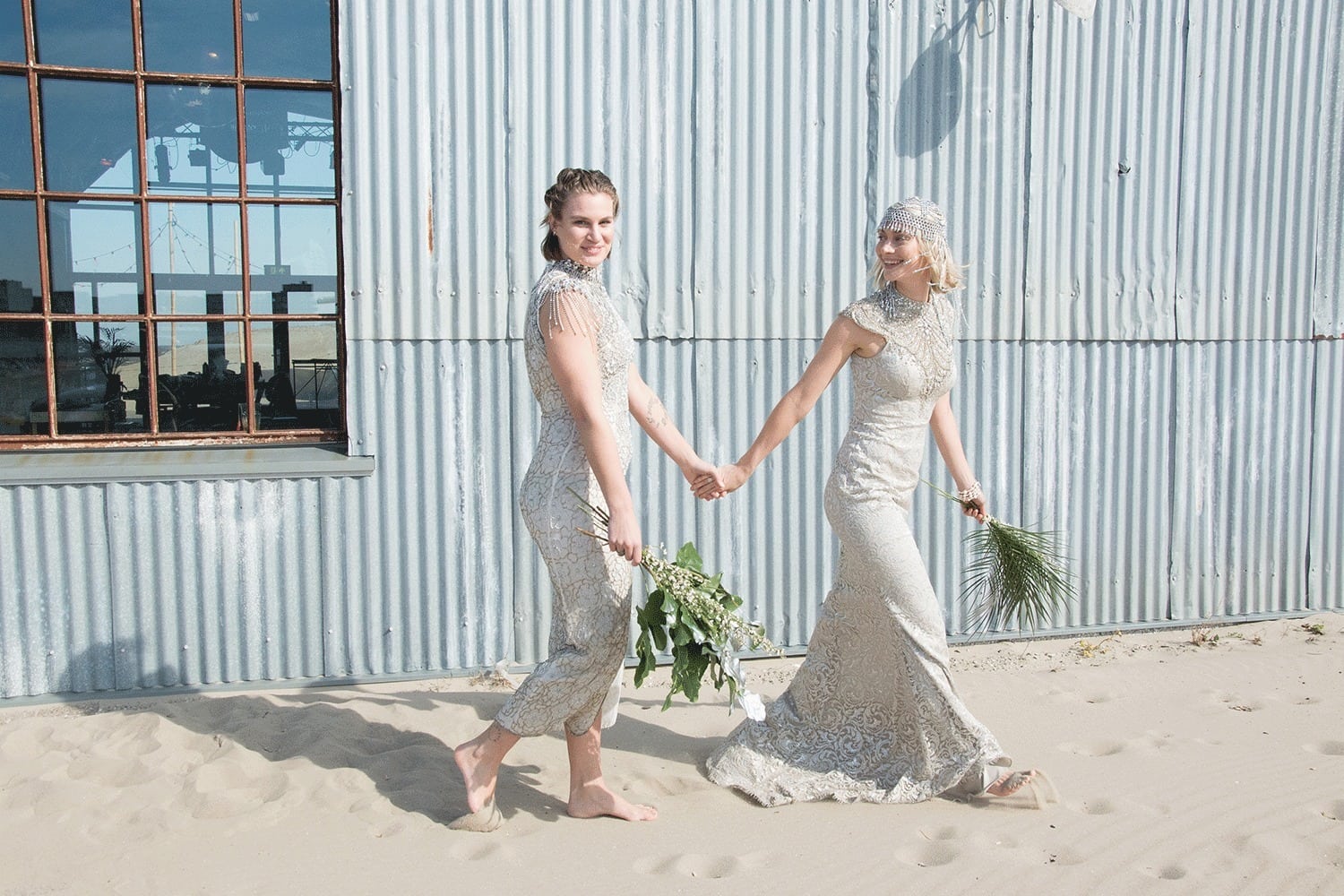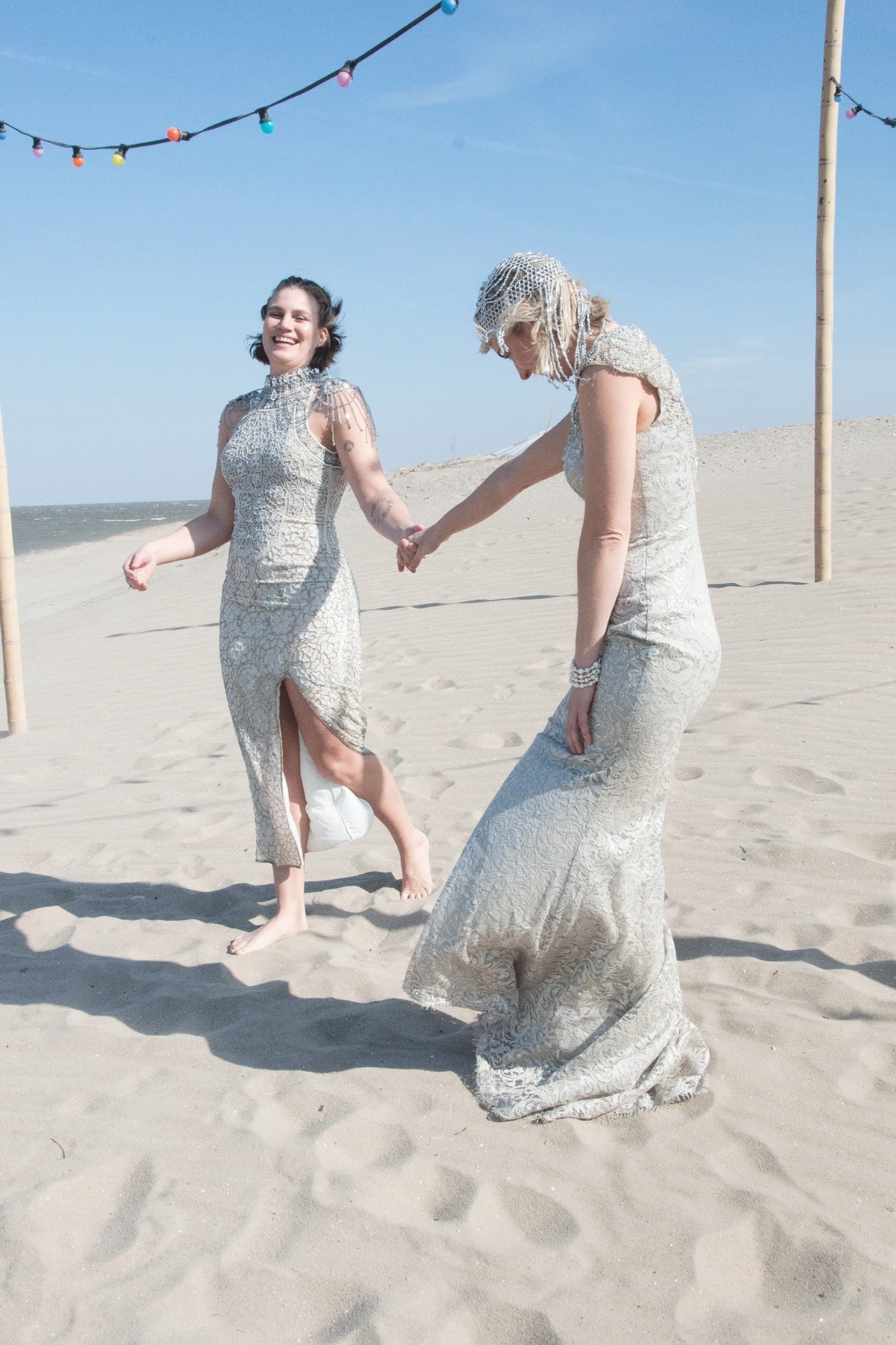 Trouwen aan zee, maar dan in Amsterdam, het kan gewoon! (Alleen niet heel lang meer bij deze toffe locatie helaas…) En dat een strandbruiloft echt niet gecombineerd hoeft te worden met een blauwe-zee-thema, dat laten deze foto’s zien.