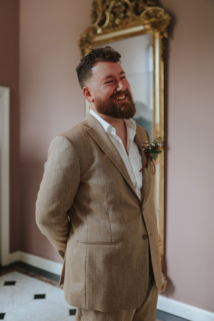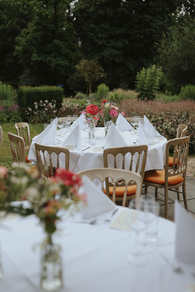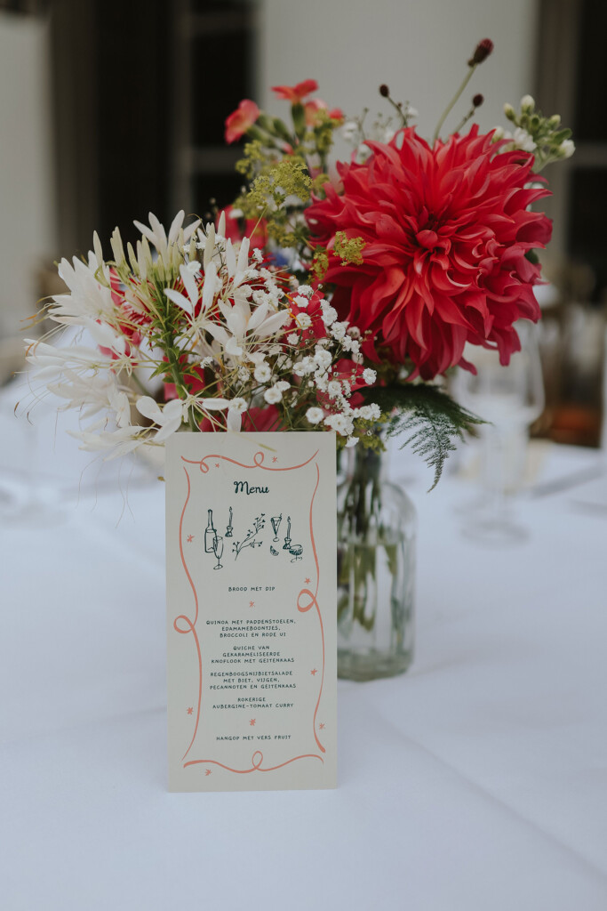Op decoratie. We hadden eigenlijk alleen bloemen, en dan ook geen enorme bloemstukken waar je aan het einde van de dag niet weet wat je er mee aan moet. De bloemen die we wel hadden, waren prachtig en zijn de volgende dag nog gebruikt voor een ander evenement. Verder hebben we zelf nog een gezellig gastenboektafeltje ingericht, en dat was het. Het hielp dat de locatie van zichzelf al prachtig was, dus we misten niks!