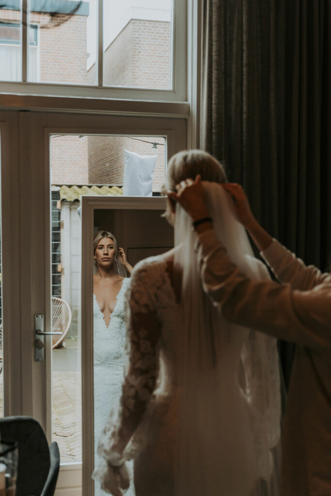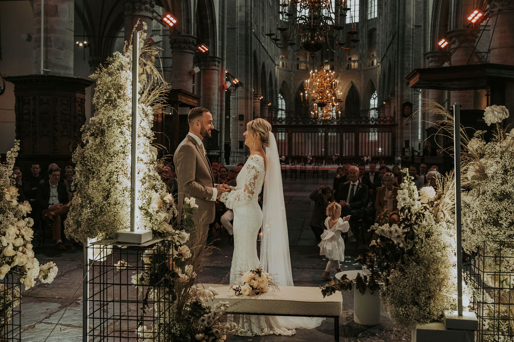 “Klein beetje, een gezonde spanning voor de opkomst! Tijdens het orgelspel – waarbij de organist van Alkmaar het nummer Perfect speelde van Ed Sheeran – liep ik samen met mijn vader naar het ‘altaar’. Tijdens onze gelofte leefde ik een roes. Uiteindelijk praat je tegen je toekomstige en vergeet je dat er nog 90 mensen naar je kijken. Het ging veel beter dan verwacht. “