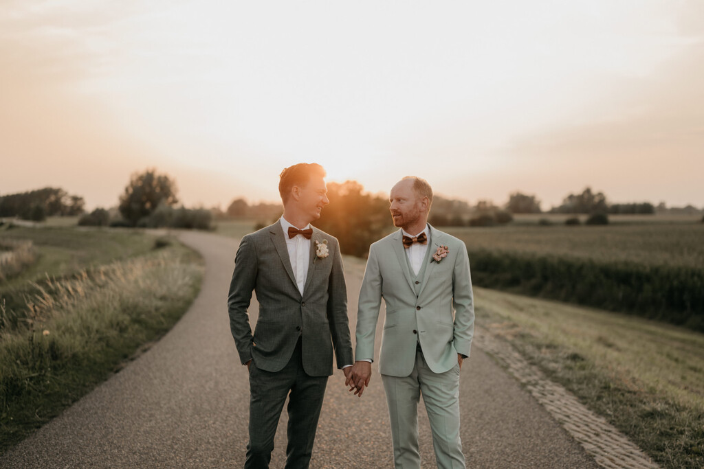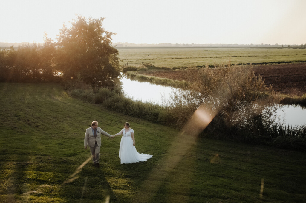 Optie 1: Tijdens de receptie De meeste bruidsparen kiezen ervoor om tijdens de borrel/receptie even weg te gaan voor hun golden hour fotoshoot. Dit werkt goed omdat gasten dan bezig zijn met elkaar, er is vaak livemuziek of een DJ, en het is een natuurlijk moment om even ’te verdwijnen’.
