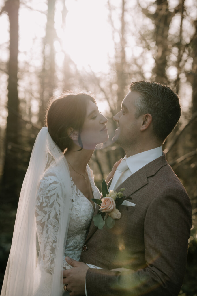 Vind je het spannend om voor een camera te staan of ben je wat meer introvert? Het gouden uur is dan helemaal perfect! Het is veel rustiger dan de drukte van de ceremonie of receptie. Je bent gewoon met z’n tweetjes (en je fotograaf natuurlijk) en kunt helemaal jezelf zijn. Geen blikken van gasten, geen druk om te ‘presteren’. Gewoon jullie twee, verliefd, in het mooiste licht.
