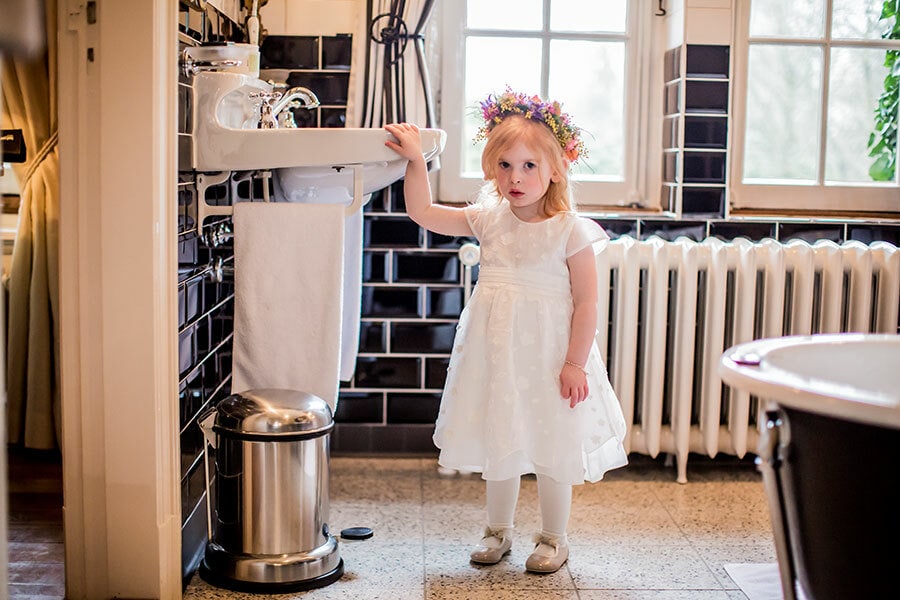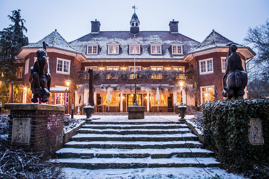 Twee weken voor de bruiloft hebben we geen sneeuw meer gezien. ’s Ochtends, rond een uurtje of 11, was ik met mijn moeder, zus en beste vriendin ons klaar aan het maken voor de bruiloft. Toen begon het ineens te sneeuwen. Grote, dikke vlokken sneeuw. Binnen een uur was buiten alles wit, dus ook de prachtige tuin die rondom huize Rustoord ligt. De sneeuw is de hele dag blijven liggen, de volgende ochtend toen we opstonden was het weg, alsof het zo moest zijn. Het gaf onze dag iets magisch. En wat waren de foto’s buiten in de tuin mooi met de sneeuw! Dit hadden we niet durven hopen, het maakte onze dag compleet.